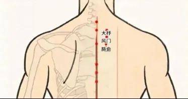 皮内针针刺背部大杼穴、风门穴、肺俞穴。