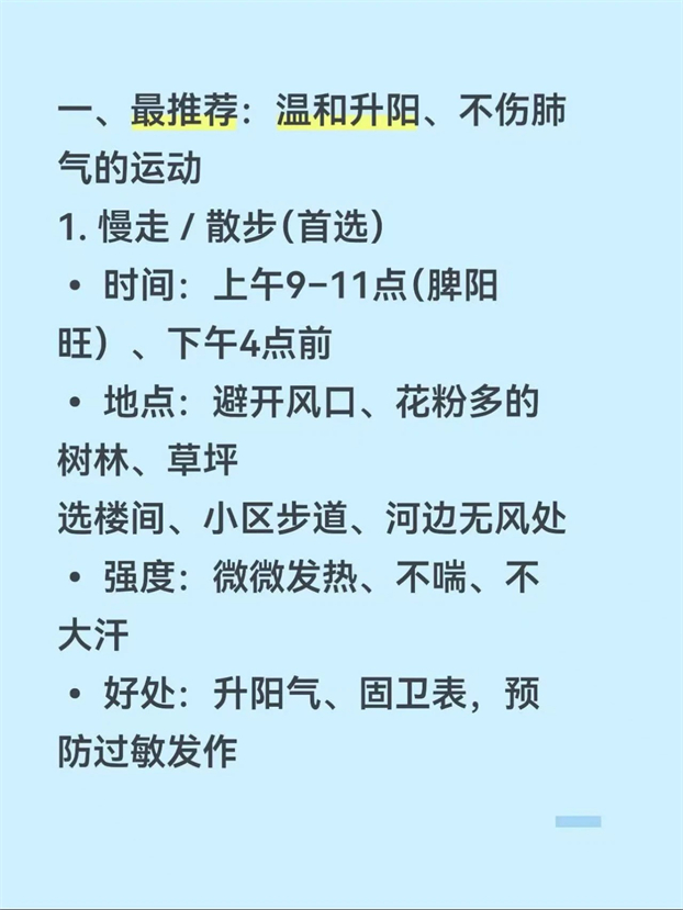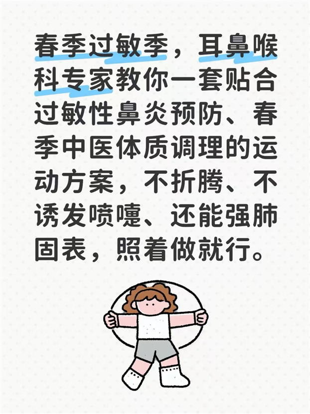 春季过敏季,耳鼻喉科专家教你一套贴合过敏性鼻炎预防、春季中医体质调理的运动方案,不折腾、不诱发喷嚏、还能强肺固表,照着做就行。