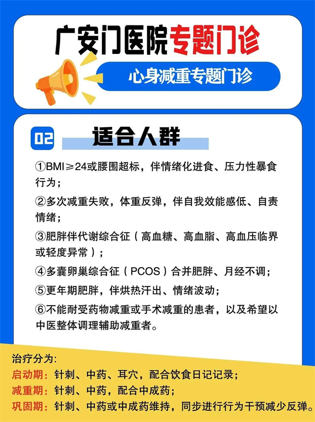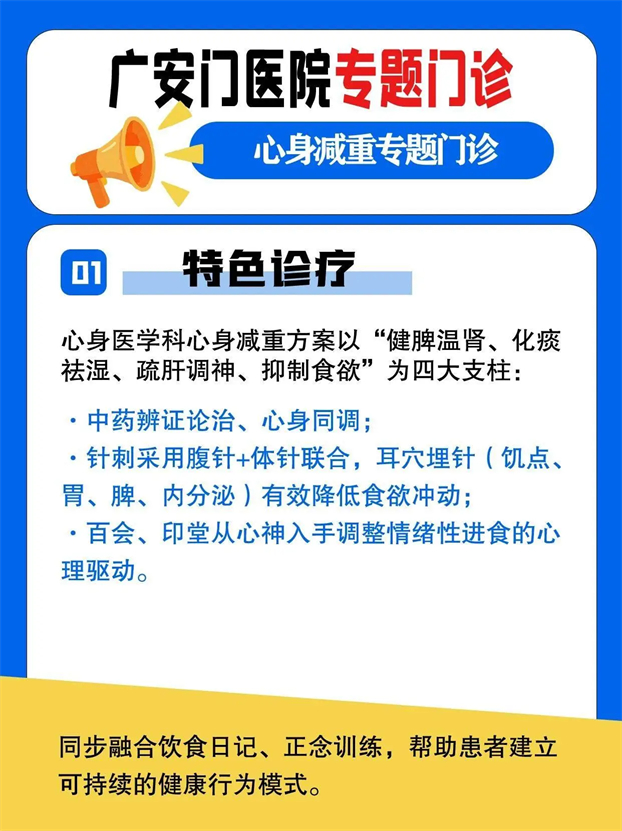 线上预约:广安门医院微信小程序/APP,点击「预约挂号」→选择「心身医学科」→选择「心身减重专题门诊」→选择预约时间。