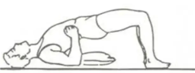 2.五点支撑法:平卧于硬板床上,用头,双脚,双肘5点支撑,将臀部抬起,使臀部尽量抬高。保持5-10秒/次,10-20次/组,2-3组/日,时间15分钟左右。