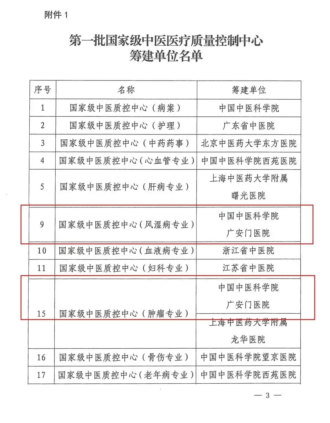 近日,国家中医药管理局印发《国家级中医医疗质量控制中心筹建单位名单》,广安门医院凭借在相关领域的深厚积淀与引领作用,肿瘤科、风湿病科双双入选第一批国家级中医医疗质量控制中心筹建单位,分别承担风湿病专业、肿瘤专业的质控体系筹建任务,标志着我院在中医优势病种医疗质量规范化建设领域迈入全国先进行列。