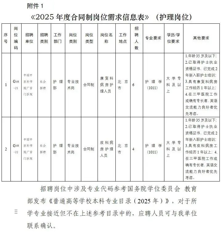 根据工作需要,2025年中国中医科学院广安门医院公开招聘合同制职工10名。现将有关事项公告如下: