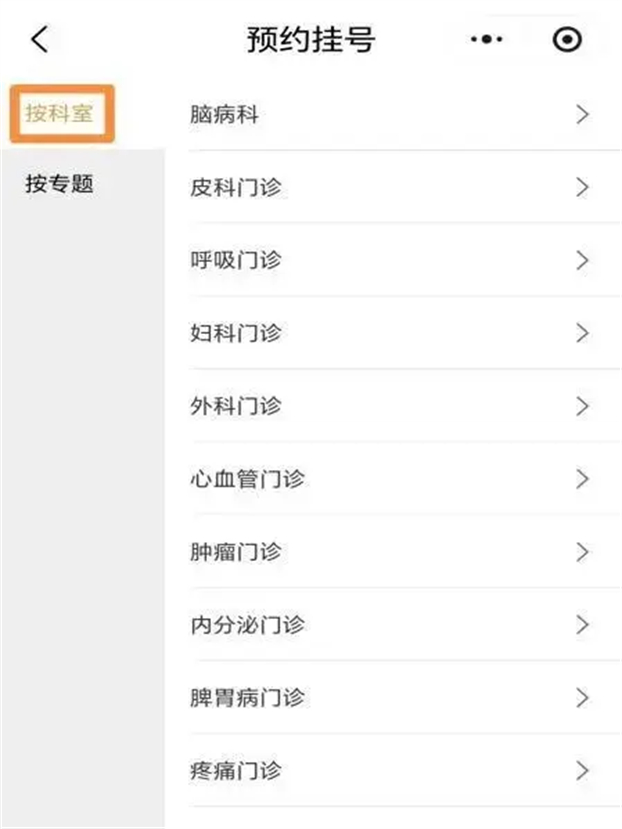 预约界面展示方式除按科室展示号源外,我院APP/微信小程序新增“按专题”展示方式,方便您根据专病专题快速查找并锁定目标号源,持续提升预约挂号体验。
