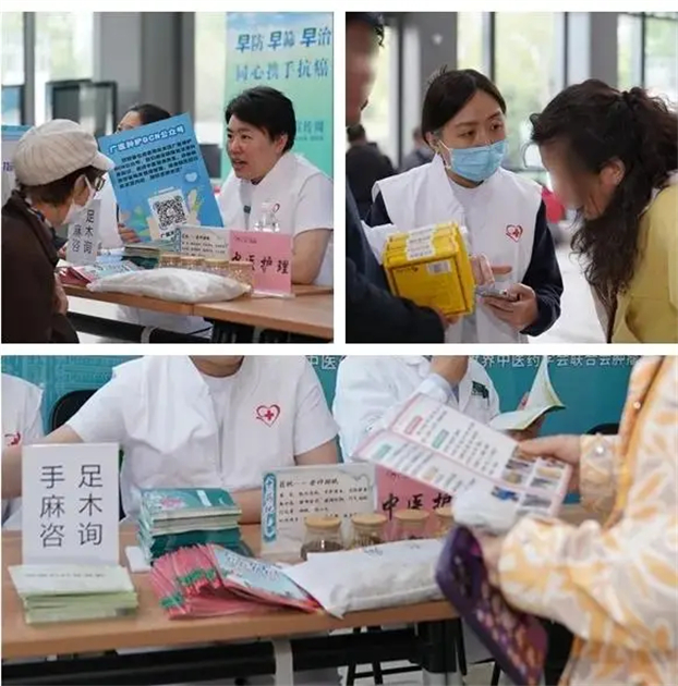 活动中,肿瘤科主任侯炜带领专家团队立足中医 “未病先防、既病防变、瘥后防复” 的防治理念,结合现代医学前沿知识,向群众普及科学防癌知识,重点强调 “早防、早筛、早治” 的重要意义,引导公众树立正确的肿瘤防治观念。针对肿瘤高危人群,专家们详细讲解筛查指征与方法,倡导主动筛查、规范诊疗。 重点科普了中医药在手术、放化疗、靶向治疗全程中的减毒增效、扶正固本作用,以及中医护理技术在缓解不适症状、提升生存质量方面的独特优势。