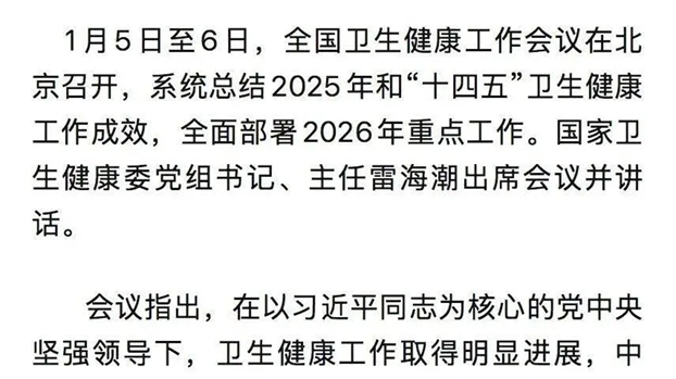 2026年全国卫生健康工作会议在北京召开