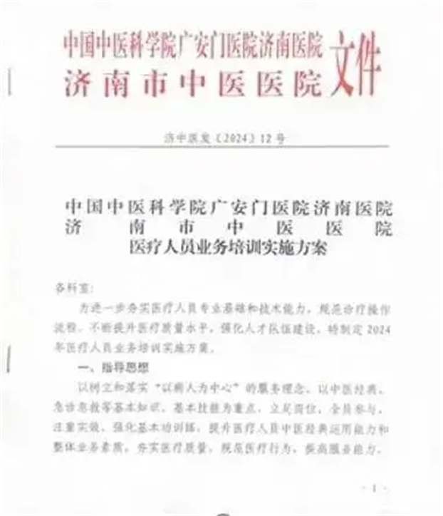 印发《中国中医科学院广安门医院济南医院医疗人员业务培训实施方案》,并持续推进总院与济南医院的人才交流,截至目前,已派出8批次共计24名医疗业务骨干,赴中国中医科学院广安门医院进修学习。通过多层次、多形式的培训与交流,加速济南医院医疗人才的成长,强化专科建设,提升整体医疗服务水平与中医药特色诊疗能力。
