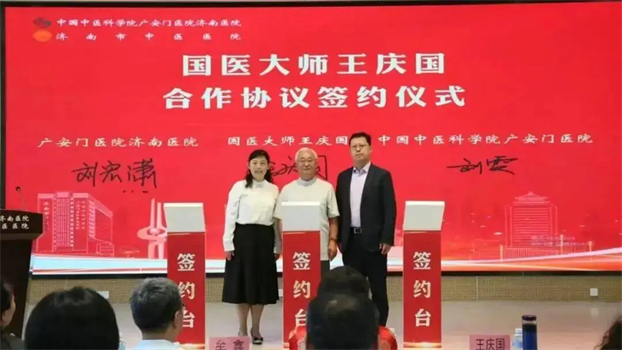 依托广安门医院师资优势实现中医药人才“传、帮、带”系统培养,同时借助学术合作资源丰富教学内容。在传承体系建设上,以名家工作室为核心载体,2024年4月20日,成立“全国名老中医药专家冯兴华传承工作室”“全国名老中医药专家谢雁鸣传承工作室”。2024年7月19日,举办中国中医科学院广安门医院、中国中医科学院广安门医院济南医院与国医大师王庆国、岐黄学者谢雁鸣合作协议签约仪式及国医大师王庆国传承工作室揭牌仪式,国医大师传承工作室正式落户泉城。2024年12月21日,成立岐黄学者姜泉传承工作室。2025年4月23日,成立国医大师王新陆血浊研究工作室。