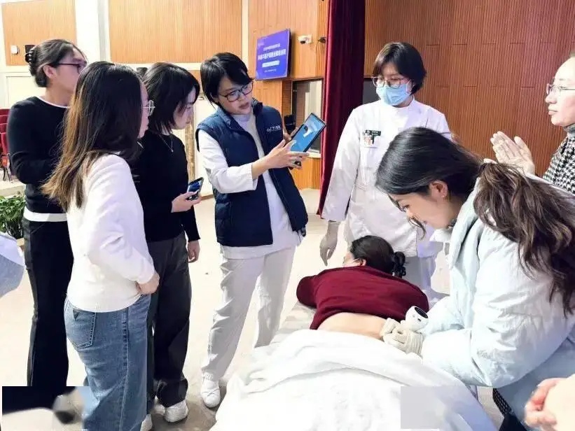 “痛症技术实施现场案例分享”环节,我院干保科主管护师钱晶晶、郭翠花以项背肌疼痛为例,现场演示砭石治疗的操作手法、适应症及注意事项,通过真人示范生动展示砭石温度、力度、角度等关键参数的调节要点,以及治疗数据的收集与分析方法,帮助学员建立清晰的实操认知。演示现场学习氛围热烈,学员们积极响应,主动参与体验互动。