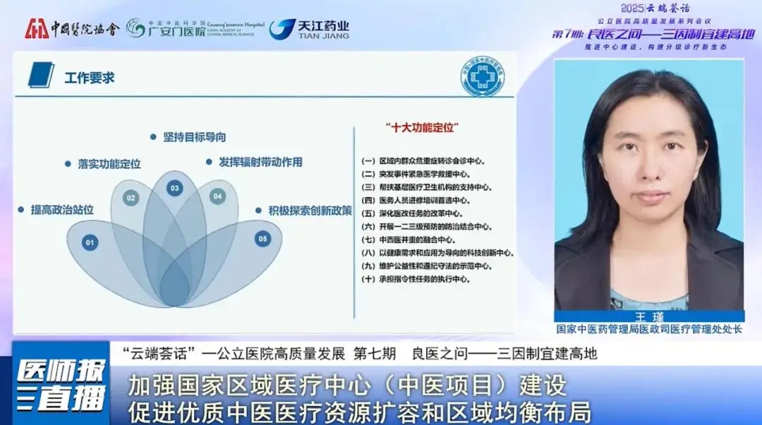 国家中医药管理局医政司医疗管理处处长王瑾作《加强国家区域医疗中心(中医项目)建设 促进优质中医医疗资源扩容和区域均衡布局》主题讲座