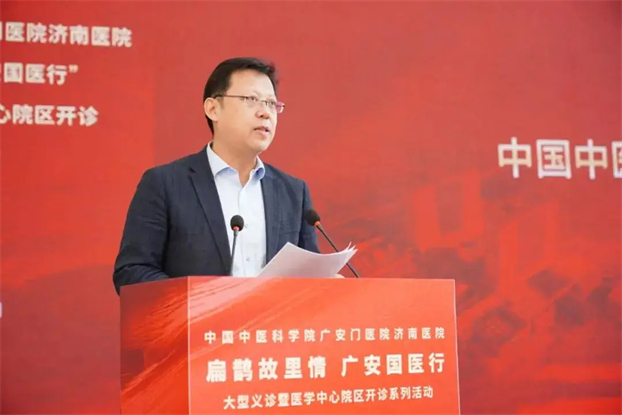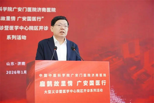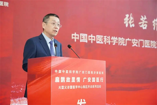 山东省人民政府副省长陈平在讲话中强调,广安门医院济南医院是山东省首个中医类国家区域医疗中心,从签约到“一院三区”格局形成,展现了“济南速度”与“广安质量”。新院区开诊是优化全省医疗资源布局、增进民生福祉的关键一步。省政府将持续加大支持力度,支持医院在人才、技术、管理等方面持续突破。希望中国中医科学院持续导入优质资源,助力将该院打造成为全国区域医疗中心标杆和辐射引领的中医医疗高地,为健康山东建设注入强劲动力。
