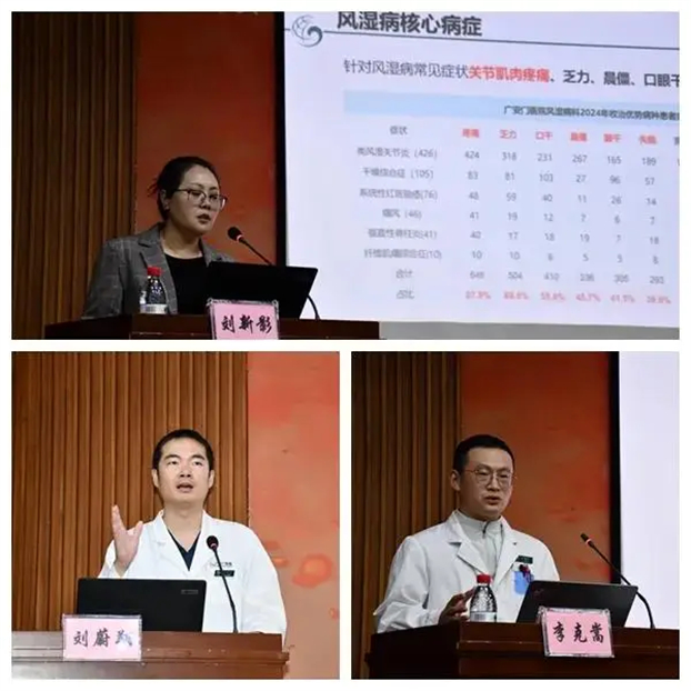 在病例讨论分享环节,风湿病科护理人员结合系统性红斑狼疮、类风湿关节炎、混合性结缔组织病等典型案例,分别从面部红斑、自汗症状、全身皮疹等护理难点入手,展示了中医特色技术在症状评估、方案实施与动态调护中的具体应用,体现了中医整体观与辨证施护的临床价值。