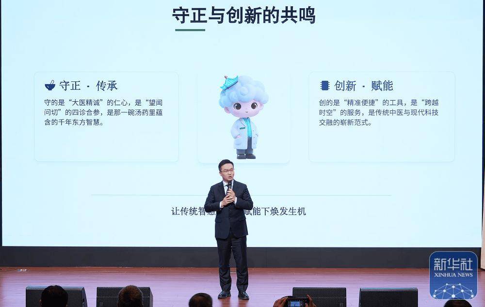 中国中医科学院广安门医院心血管科主任张振鹏在活动上进行《守正创新 数智中医》主题演讲。新华社记者 张玉薇 摄影报道