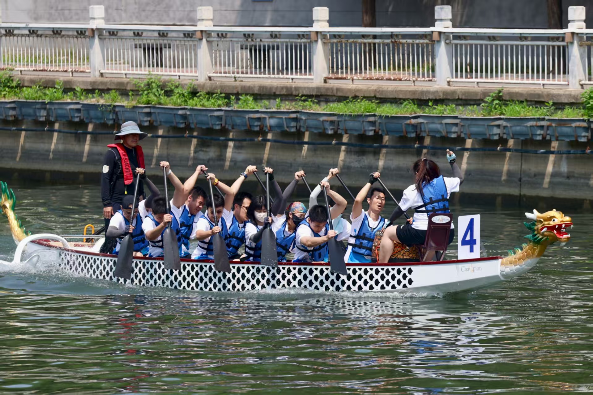 比赛当日,骄阳似火,人声鼎沸,观众的欢呼与呐喊声交织成一首激昂的战歌。各队选手摩拳擦掌,广医龙舟队面对众多强敌,毫不退缩,凭借着不屈不挠的斗志与精准的团队协作,在起跑的劣势中绝地反击,最终以惊人的速度、持久的耐力超越对手,率先触达胜利的彼岸。尽管未能问鼎冠军,但毫无龙舟经验的他们却以季军之姿,书写了属于自己的荣耀篇章。