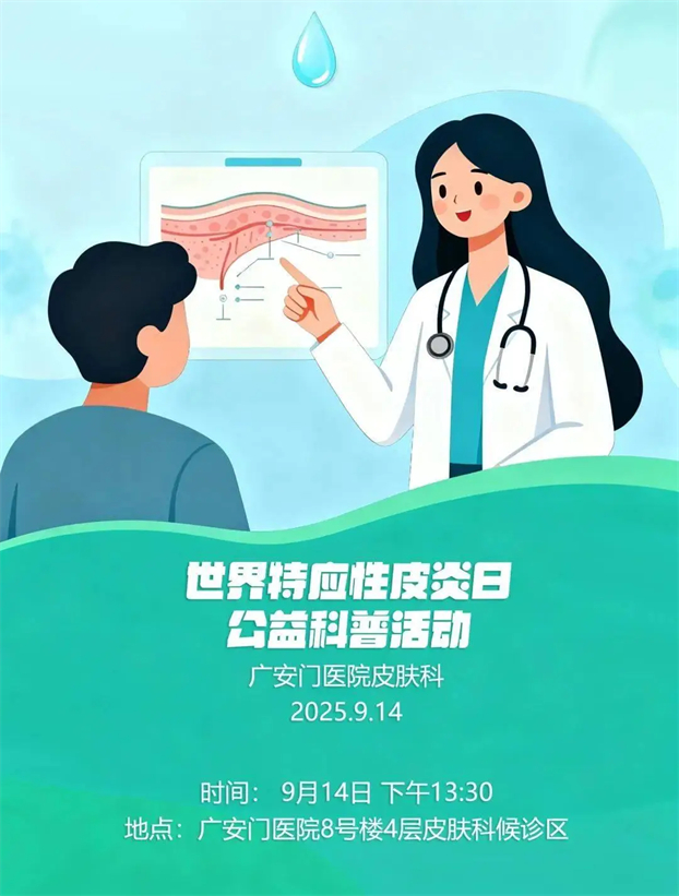 9月14日,世界特应性皮炎日到来之际,为提高公众对特应性皮炎的认知,了解正确有效的防治方法,帮助患者及家属掌握科学护理知识,改善患者生活质量,我院皮肤科将开展“特应性皮炎日公益科普活动”。期待您的参加!