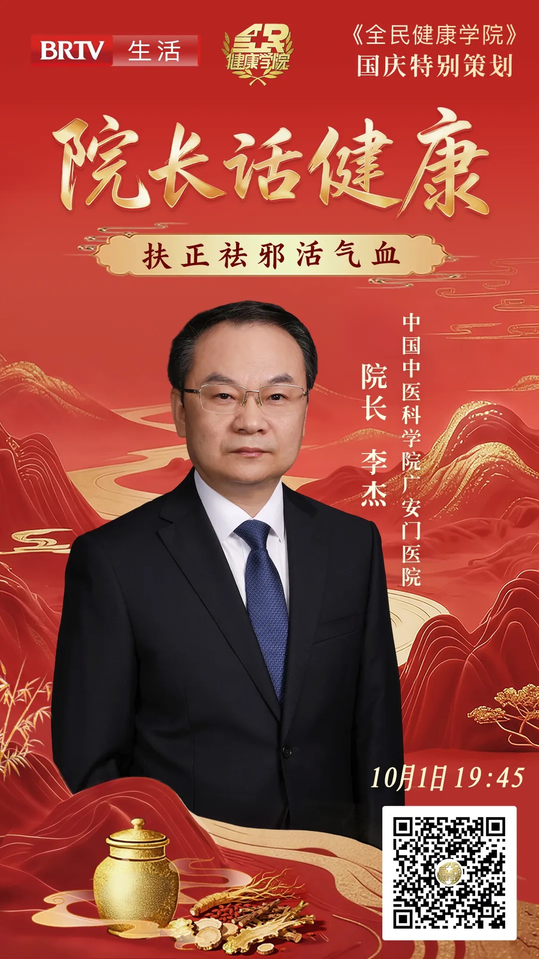 广安门医院院长李杰做客《全民健康学院》,教您扶正祛邪活气血