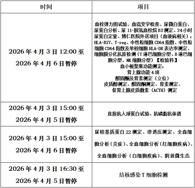 1.4月5日(周日)全天无门诊。(含门诊药房/检验/检查均暂停)。