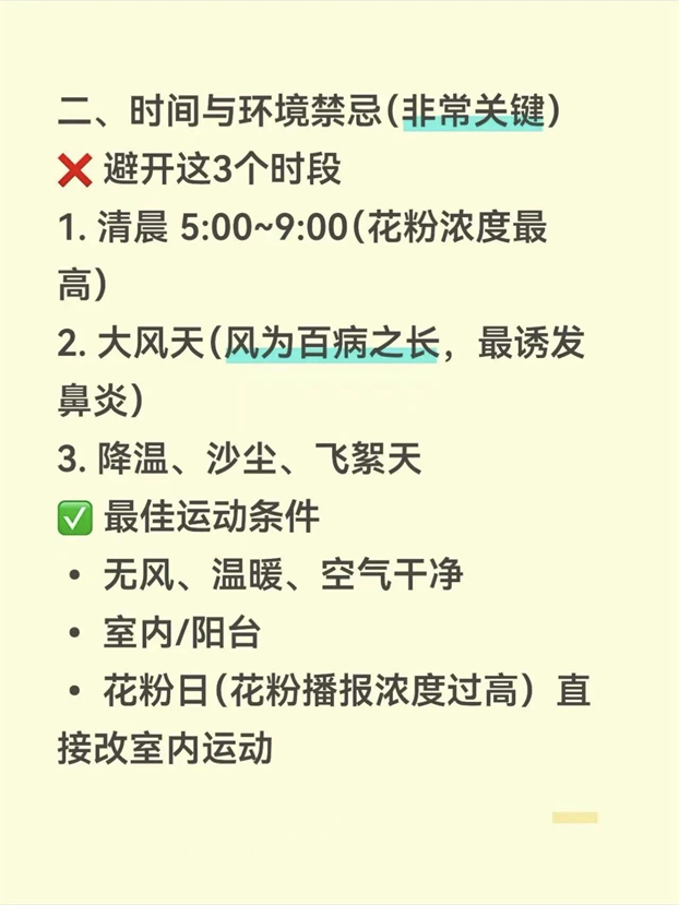 春季过敏季,耳鼻喉科专家教你一套贴合过敏性鼻炎预防、春季中医体质调理的运动方案,不折腾、不诱发喷嚏、还能强肺固表,照着做就行。