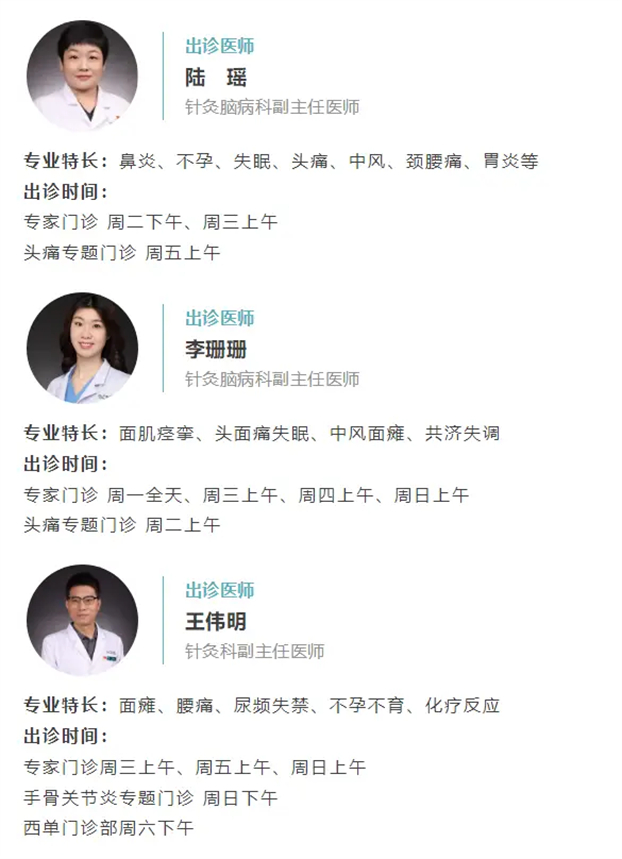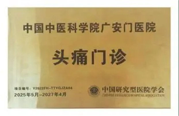 广安门医院针灸脑病科头痛门诊2025年开诊,同时是中国研究型医院学会头痛与感觉障碍专业委员会认证的头痛门诊。门诊以针灸+药物结合治疗原发性头痛为主,专注于顽固性头痛的治疗和慢性头痛的长期管理。