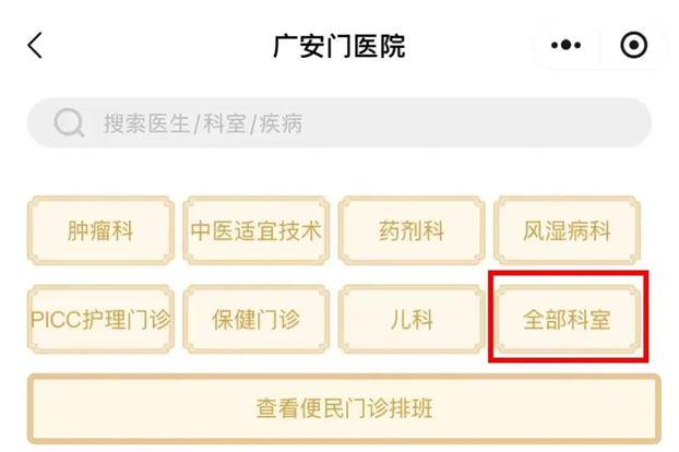 线上预约:广安门医院微信小程序/APP,点击「预约挂号」→选择「外科」→「造口专题门诊」→完成预约。