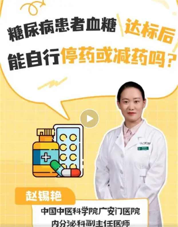 糖尿病患者血糖达标后能自行停药或减药吗?广安门医院内分泌科副主任医师赵锡艳:或引起血糖反跳性升高!