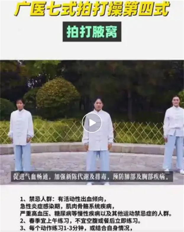 定位:腋窝,位于肩膀与胸部的交界处,是上肢与肩部的连接处形成的凹陷部分。 动作分解:自然站立或坐位,一只手伸直举起,自然扶于头顶,另一只手拍打腋窝处的极泉穴10次。双侧交替进行。 功效:内经讲"肝有邪,其气流于两腋",通过拍打腋窝的极泉穴,可使气血畅通促进人体代谢、排毒,预防肺部、胸部疾病。
