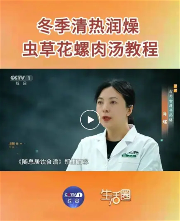 广安门医院综合科主任医师王佳和您一起:打开古籍寻药膳——海螺。冬季进补怕燥热?试试虫草花螺肉汤!螺肉清热明目、滋阴润燥,搭配虫草花、鸡肉、红枣,温补不燥还鲜醇!不仅能缓解眼干口干、上火不适,还能补肺肾、提升免疫力,适合易疲劳和呼吸道敏感人群~ 做法简单易上手,海鲜过敏、痛风及脾胃虚寒者慎吃,赶紧记下做法,秋冬养生喝它超合适! 来源:CCTV1
