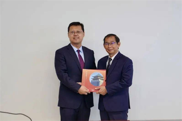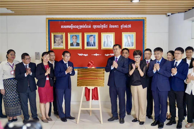 6月25日,广安门医院与考斯玛中柬友谊医院座谈会暨“澜湄中医药诊疗和文化推广中心揭牌仪式”在柬埔寨首都金边举行。考斯玛中柬友谊医院院长谭索坤(Tan Sokun)、广安门医院院长刘震,援柬中国中医医疗队全体队员及两院相关部门负责人等参加座谈。会议由考斯玛中柬友谊医院副院长Dr.Sophean Sahakcheat主持。