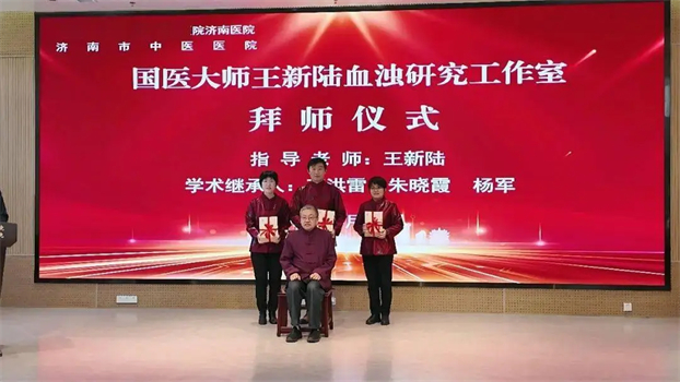 拜师仪式上,三位继承人向老师行拜师礼并敬茶、献花,表达对导师的敬仰与感激。国医大师王新陆也向继承人赠送三本著作作为拜师回礼。