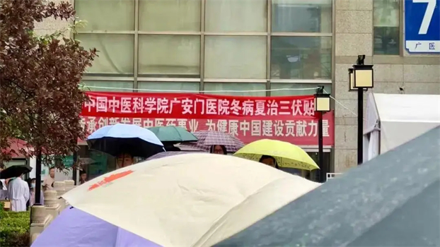 7月20日,头伏第一天,广安门医院2025年度三伏集中贴敷在大雨中有序开展。大雨中,有医务人员的坚守,更有患者的理解与支持,还有懂养生的你。首个集中贴敷日,现场贴敷10999人次。