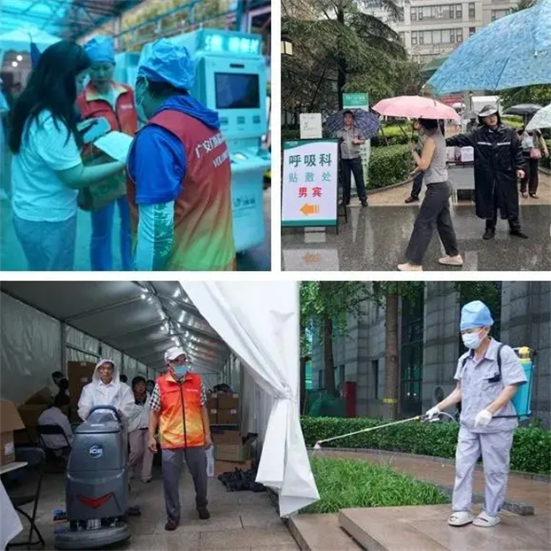 志愿者服务、保安疏导,保洁吸水防滑及灭蚊工作