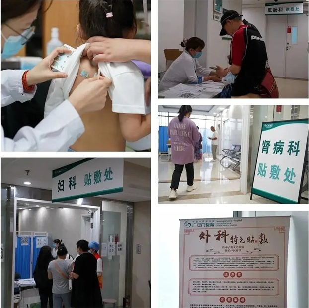 不仅如此,风湿病科、耳鼻喉科等科室还扩大了“消喘膏”的适应症范围,推出针对类风湿关节炎、过敏性鼻炎等病症的贴敷治疗,儿科、妇科、肛肠科、肾病科、外科、治未病中心等科室也结合专科疾病,为患者提供个性化的穴位贴敷和三伏灸服务。