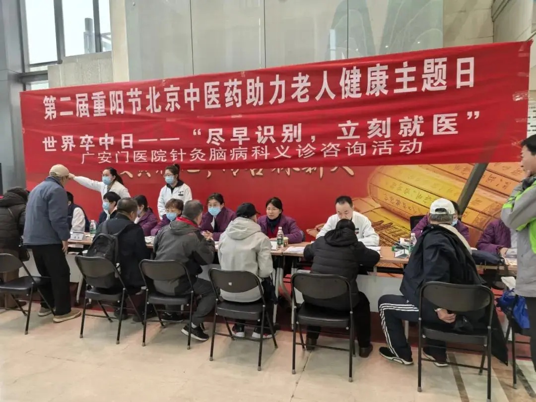 在第20个“世界卒中日”到来之际,恰逢重阳节,我院针灸脑病科举办“世界卒中日”主题义诊暨第二届重阳节北京中医药助力老人健康主题日活动。本次义诊旨在提高公众对卒中早期症状的识别能力与急救意识,推广中西医结合防治卒中的理念与方法。