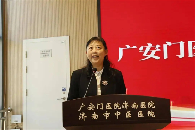 济南市卫健委中医药业务处处长侯本贞为四位学科带头人颁发了聘书。他在讲话中强调,国家区域医疗中心建设是优化医疗资源布局的重大民生工程,希望广安门医院持续加大优质资源输出,济南医院要和广安门医院进一步深化交流协作,拓展合作领域、提升合作层次,共同探索中医药传承创新发展的新路径、新方法,为保障人民群众生命健康、推动健康济南建设作出新的更大贡献。