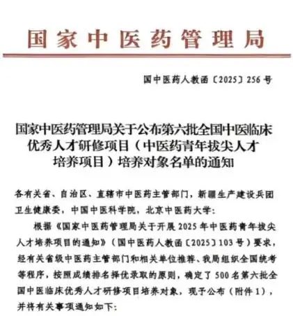 “全国中医临床优秀人才研修项目”是国家中医药管理局主导的中医高端人才培养工程,旨在选拔医德高尚、理论深厚、医术精湛的临床领军人才和学科带头人。项目遴选需通过中国中医科学院系统考试与国家中医药管理局统一中医经典理论考试,竞争激烈,入选者均为全国中医临床领域的杰出代表。