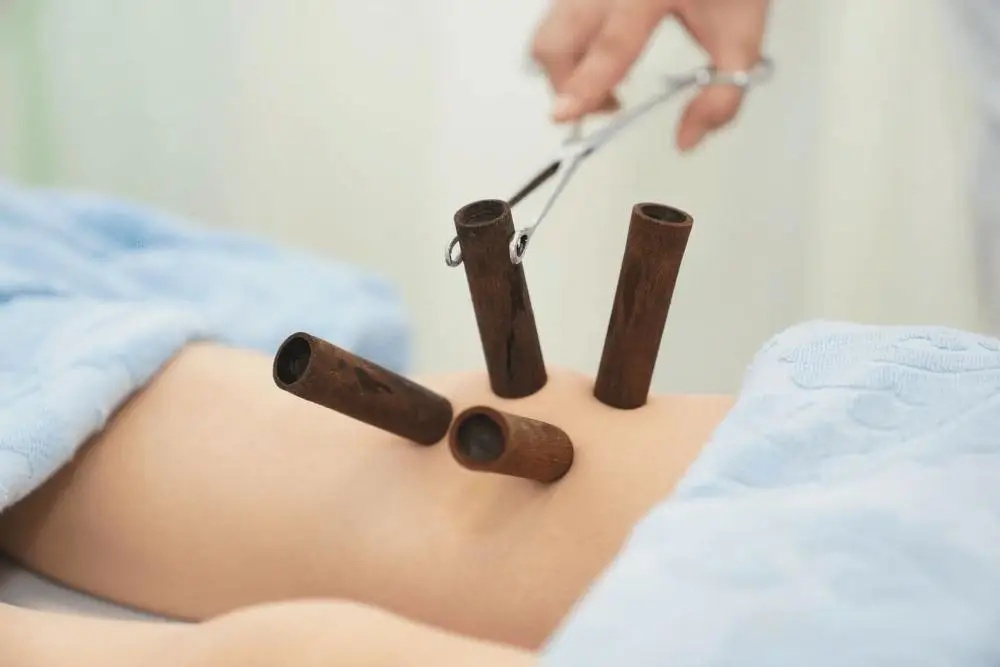将中药饼敷于治疗部位,在毛巾上洒酒精并点火,促使患者排汗以缓解寒证——这一源于灸法的中医适宜技术火灸,历史悠久。