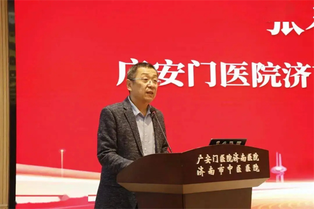广安门医院副院长李军在讲话中,向冯兴华教授致以崇高敬意与诚挚祝福。指出,冯兴华老是广安门医院的骄傲,六十载坚守“大医精诚”、深耕杏林,既造福患者又倾心育人。希望,广安门医院济南医院能充分发挥国家区域医疗中心的辐射带动作用,持续深化各方合作,为中医药事业高质量发展凝聚更多发展合力。