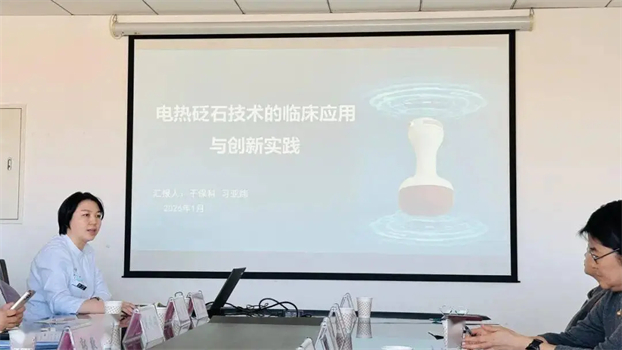 我院肿瘤科护士长陈扬、干保科护士长习亚炜分别介绍了中药热熨敷技术、电热砭石技术的实践应用与研究创新。