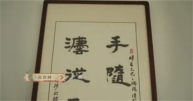 “手随心转、法从手出” 八个字苍劲有力,点出了推拿医者至高境界,又暗藏 “掌上功夫” 的神秘韵味。笔墨流转间,仿佛已经感受到推拿手法的灵动与力道,瞬间让人对这门 “功夫手法” 充满期待~