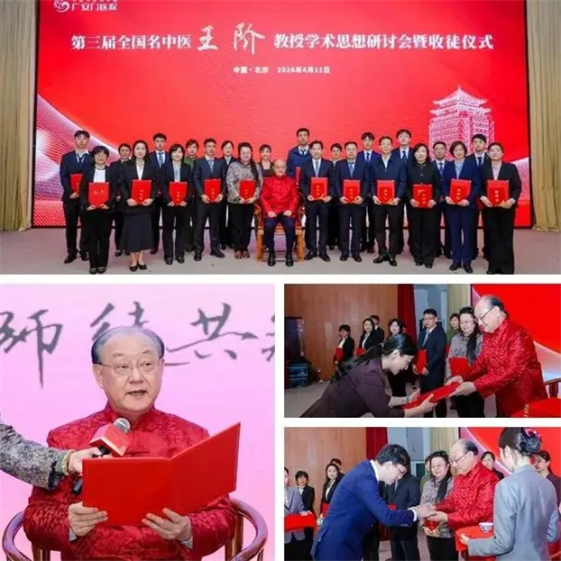 4月11日,由中国中医科学院广安门医院心血管科主办,全国名中医王阶传承工作室、王阶全国名老中医药专家传承工作室和北京中医药薪火传承“3+3”工程王阶名医传承工作站共同承办的“第三届全国名中医王阶教授学术思想研讨会暨收徒仪式”在我院学术报告厅召开。 本次大会以“医脉赓续开盛景,和光同频创华章”为主题,北京市中医药管理局副局长李德娟,中国中医科学院副院长杨洪军,全国名中医王阶,我院 党委书记刘震、副院长刘龙涛出席开幕式,中国中医科学院学术管理处处长姚魁武、云南省第一人民医院原院长蒋立虹等作主旨演讲。开幕式由广安门医院副院长李军主持。