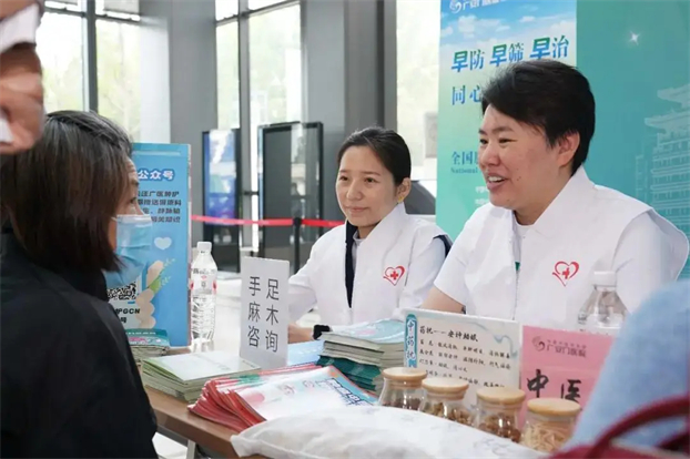 4月15日,在第32个全国肿瘤防治宣传周到来之际,为深入贯彻党中央关于实施健康优先发展战略的决策部署,全面落实健康中国行动癌症防治相关要求,持续推进中医肿瘤防治工作高质量发展,广安门医院联合中国中医科学院肿瘤研究所、中国中医肿瘤防治联盟、中华中医药学会肿瘤分会、世界中医药学会联合会肿瘤专业委员会、中国抗癌协会肿瘤传统医学专业委员会等单位,在医院门诊大厅举办 “早防早筛早治 同心携手抗癌” 主题健康咨询科普宣传活动。院党委书记刘震、肿瘤科主任侯炜及我院知名肿瘤专家参加活动。
