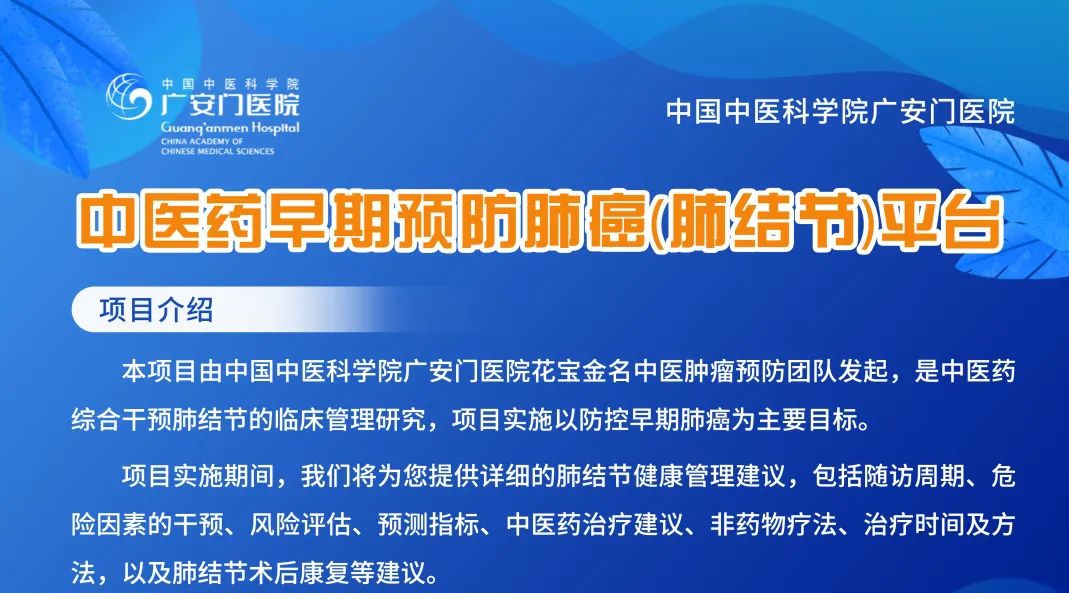 广安门医院建立中医药早期预防肺癌(肺结节)平台