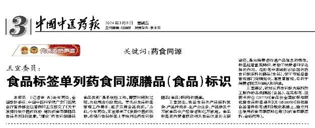 王宜委员:食品标签单列药食同源膳品(食品)标识