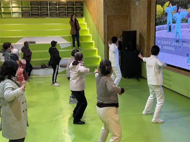 针灸脑病科和呼吸科护士、老年专科护士为现场居民进行中医护理教学指导,开展中医预防小妙招——穴位按摩讲解,中医传统养生功法——八段锦教学,发放科普宣传材料。