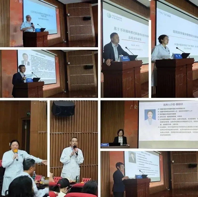 北京中医药大学中药学院副院长魏胜利、中药制药系副主任尹兴斌、中药资源与鉴定系主任刘春生, 中国中医科学院中药研究所炮制研究中心主任张村、中药资源中心中药材品质评价研究室主任詹志来,首都医科大学中医药学院党委书记龚慕辛,中国医学科学院药用植物研究所药用植物鉴定中心副主任郭宝林,北京市药品检验研究院中药室主任傅欣彤,首都医科大学中医药实验教学中心主任罗容,以及我院内分泌科知名专家刘喜明、药学部主任金敏分别作专题讲座。首都医科大学附属北京友谊医院主任药师赵奎君、北京中医药大学第三附属医院药学部主任孔祥文、中国中医科学院眼科医院药学部副主任曾蔚欣以及我院药学部副主任杨响光、药学部副主任药师陈雯共同主持会议。