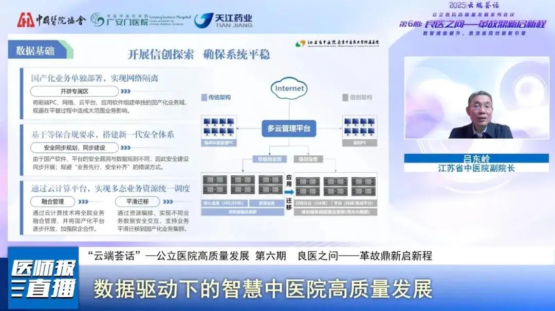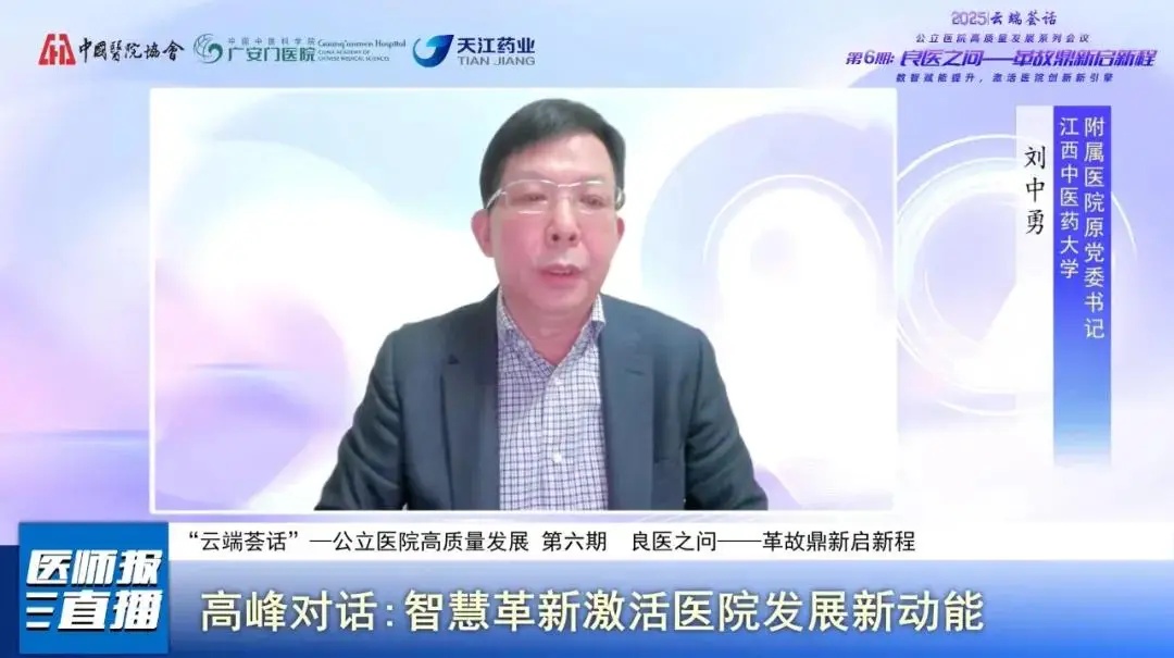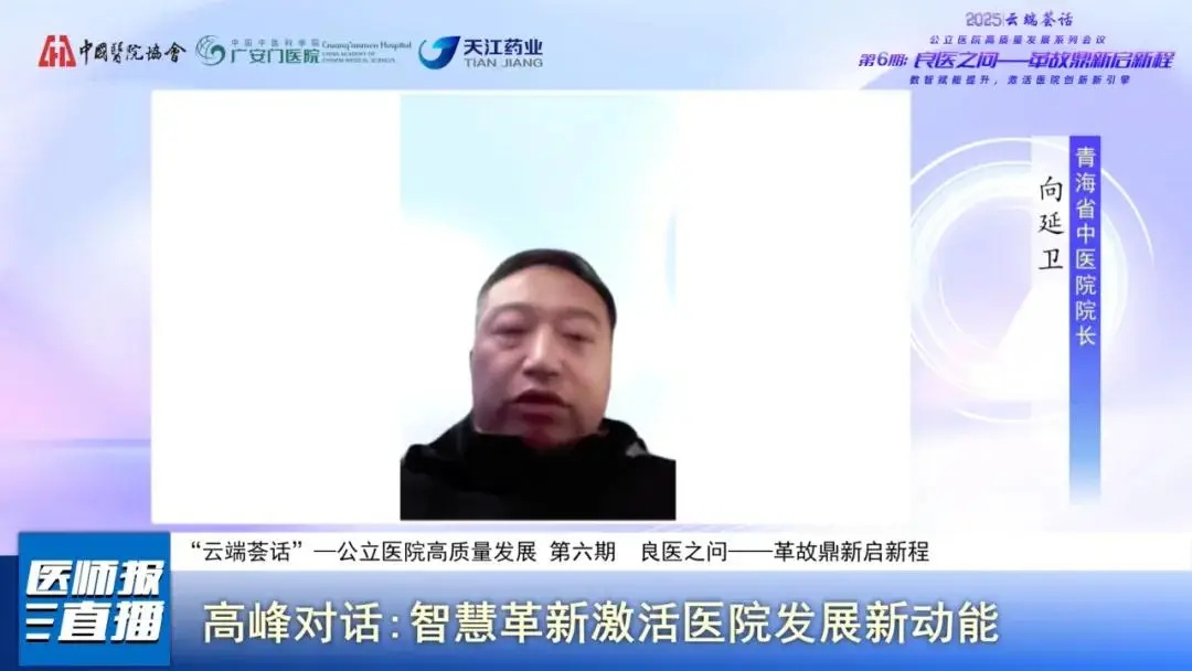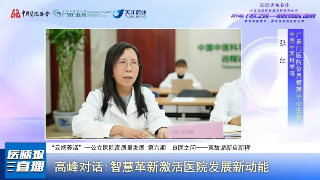 10月23日,由中国医院协会中医医院分会与我院联合创办的品牌论坛“云端荟话”——公立医院高质量发展系列论坛第四季第六期《良医之问——革故鼎新启新程》于云端开讲。本期论坛聚焦于“数智赋能提升,激活医院创新新引擎”,围绕智慧医院高质量发展展开讨论,旨在通过交流人工智能、大数据与医疗服务的深度融合,洞悉前沿、破解难题,共同探索以数智化赋能医院管理、守护人民健康的新路径与新模式。