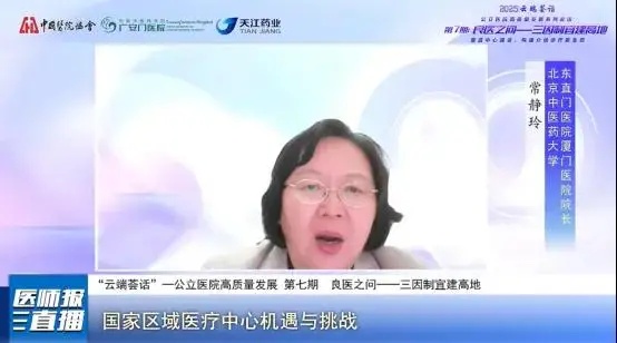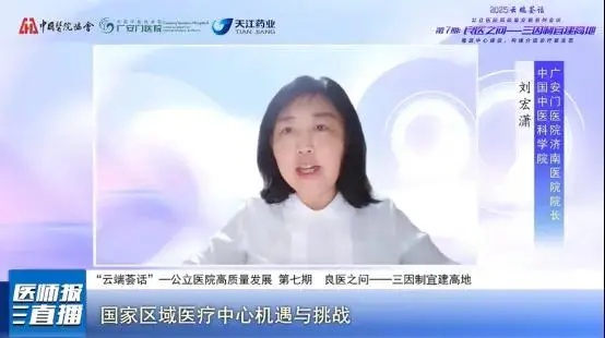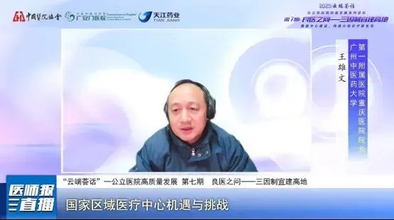 11月27日,由中国医院协会中医医院分会与我院联合创办的品牌论坛“云端荟话”——公立医院高质量发展系列论坛第四季第七期《良医之问——三因制宜建高地》于云端开讲。本期会议特邀国内卫生健康及医院管理领域的多位权威专家,聚焦“推进中心建设,构建分级诊疗新生态”,围绕国家区域医疗中心高质量发展新路径进行深度研讨,旨在探索可复制、可推广的区域医疗中心建设创新模式。