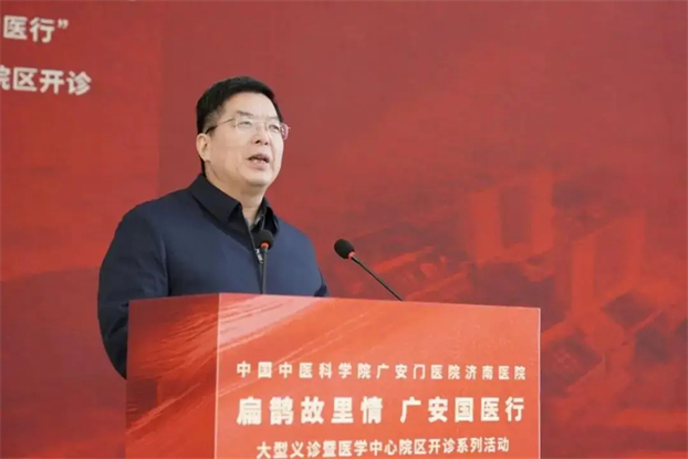 山东省人民政府副省长陈平在讲话中强调,广安门医院济南医院是山东省首个中医类国家区域医疗中心,从签约到“一院三区”格局形成,展现了“济南速度”与“广安质量”。新院区开诊是优化全省医疗资源布局、增进民生福祉的关键一步。省政府将持续加大支持力度,支持医院在人才、技术、管理等方面持续突破。希望中国中医科学院持续导入优质资源,助力将该院打造成为全国区域医疗中心标杆和辐射引领的中医医疗高地,为健康山东建设注入强劲动力。