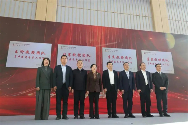 济南市政协主席雷杰 (左4),济南市人民政府副市长任广锋(左5),山东省卫生健康委员会副主任、省中医药管理局副局长李明,济南市卫生健康委党组书记、市中医药管理局局长牟鑫,广安门医院党委书记刘震、院长李杰、风湿病科主任姜泉、心血管科主任张振鹏共同揭牌