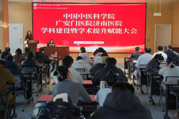 为深化中医药传承创新,推动学科建设提质增效,搭建高水平学术交流平台,济南医院举办学科建设暨学术提升赋能大会。广安门医院的一线专家聚焦临床热点进行专题讲座。济南医院临床及职能科室主任、负责人、业务骨干、规培医师及社区医生代表参加培训。会议由广安门医院济南医院党委副书记陈嫚嫚主持。