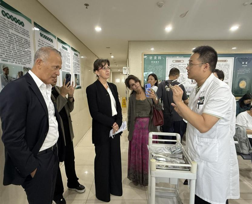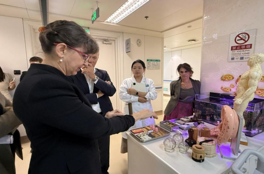 The delegation observed TCM characteristic therapies such as acupuncture and moxibustion at the Acupuncture and Moxibustion Department. In the Rheumatology Ward, hospital experts introduced systematic and personalized TCM diagnosis and treatment approaches for rheumatic and autoimmune diseases, sharing relevant clinical research outcomes.